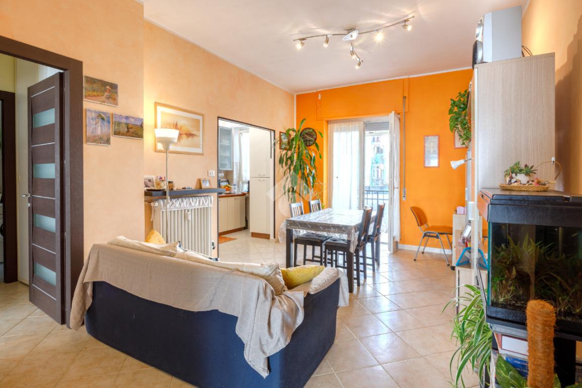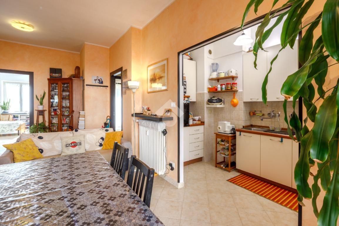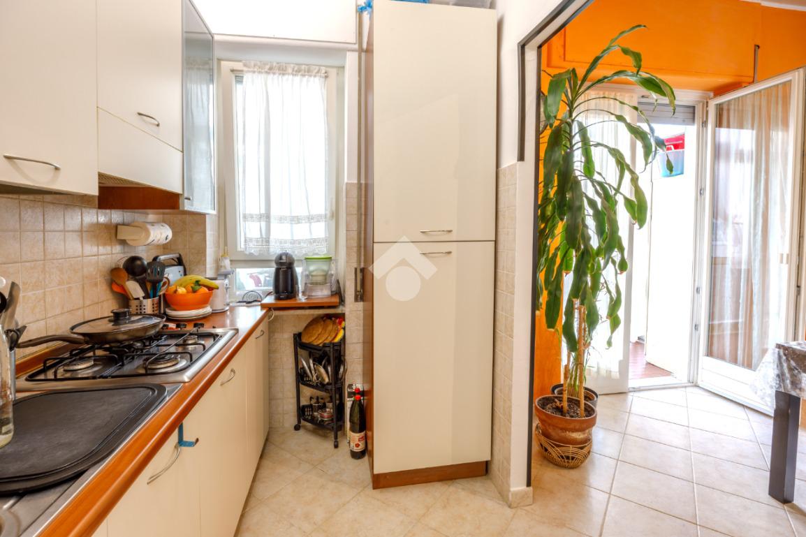 L’alloggio è sito in uno stabile ben tenuto nelle parti comuni e dotato di ascensore. L’ingresso, tramite portoncino blindato, apre su un’ampia e spaziosa zona giorno, con cucina a vista. L’ambiente gode dell'uscita su un pratico balcone verandato.